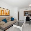 Al entrar, te recibe un salón espacioso y luminoso con sofás, butacas y smart TV. Desde aquí, tienes acceso directo a una terraza privada amueblada con mesa para 6 comensales, ideal para disfrutar de increíbles vistas al mar de Alborán y las montañas.