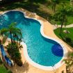 La urbanización muy bien cuidada con una preciosa fuente y jardines maduros con una magnífica vegetación mediterránea y tropical, cuenta con dos piscinas, uno para adultos y otra infantil, en el mismo recinto de las piscinas hay baños para todos los residentes.