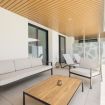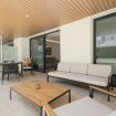 La espaciosa terraza está cuidadosamente amueblada con: una zona chill-out, con un cómodo sofá y un sillón; una mesa de comedor redonda, para 4 personas; y 2 tumbonas, para que pueda tomar el sol mediterráneo sin salir de la propiedad. Además, también se puede acceder a la terraza desde los dos dormitorios.