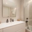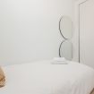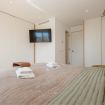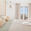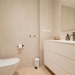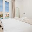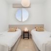 El segundo dormitorio se ha equipado con una cama king size (1,80 x 2,00), armario empotrado y vistas a la piscina. El tercer dormitorio cuenta con 2 camas individuales. El segundo baño dispone de un lavabo y una amplia bañera, ideal para relajarse tras un día de playa o actividades al aire libre.