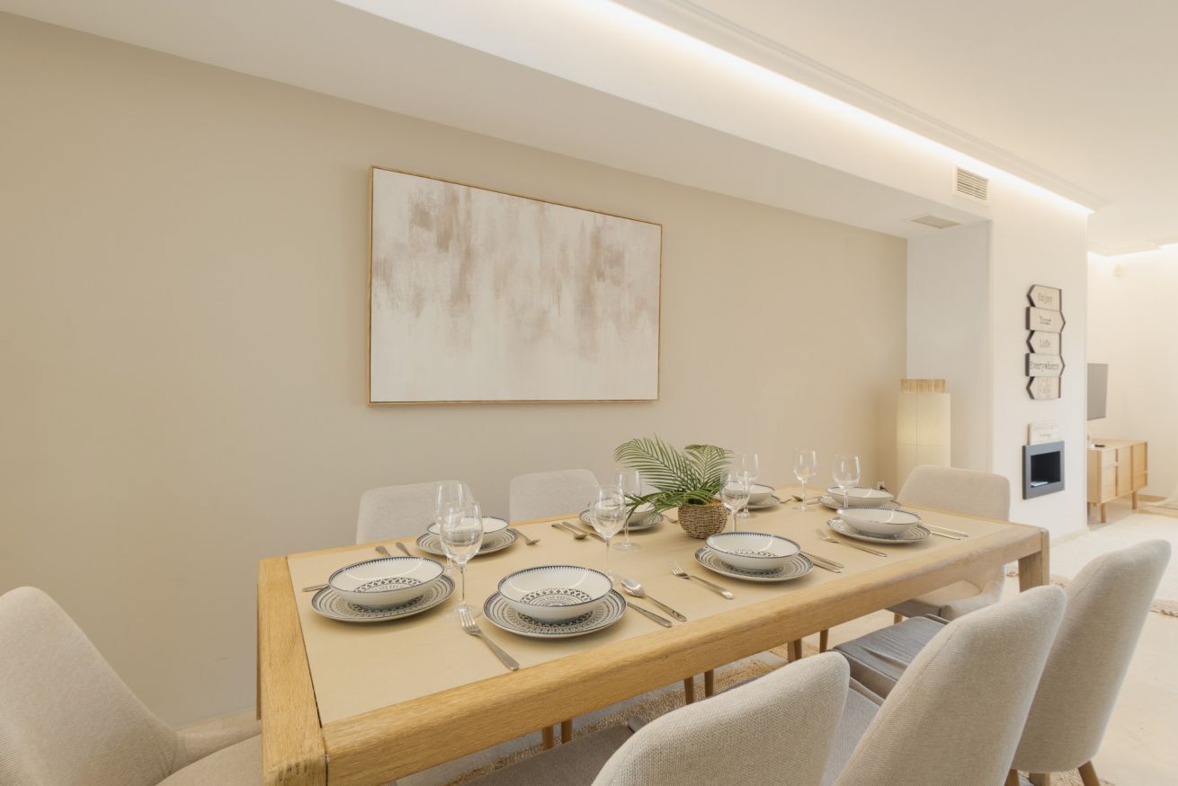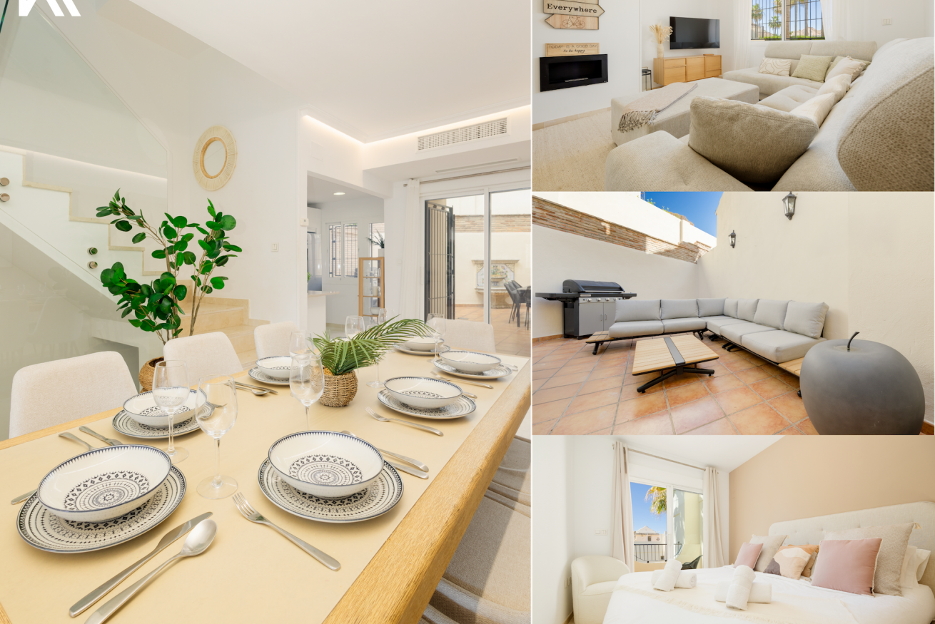 Espaciosa y moderna casa adosada, ideal para familias, situada en el lujoso complejo residencial El Arenal, en Costabella, Marbella Este. Con acceso directo a la playa de Costabella y excelentes piscinas comunitarias, una de ellas para niños. Esta propiedad, recién reformada, mide 267 m², distribuidos en 3 plantas que incluyen: un amplio salón-comedor, una acogedora cocina abierta, una gran terraza con barbacoa y comedor, ideal para eventos, 4 dormitorios, 4 baños y balcones en todas las habitaciones, además de parking privado.