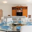 El amplio y luminoso salón, que cuenta con TV, un bonito sofá, acompañado de un asiento de tela, una mesa de comedor, para 8 comensales, una chimenea y un piano de cola, conecta, de manera directa, con la terraza privada de la propiedad. En dicha terraza podrá encontrar otra mesa-comedor, en este caso pensada para 5 personas. Además, es gracias a esta terraza que usted podrá acceder de manera directa a todas las instalaciones que brinda la urbanización Playas del Duque, así como salir de la misma y acceder directamente al paseo marítimo o la playa.