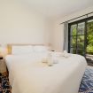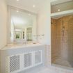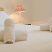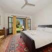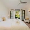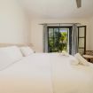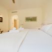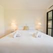 La villa cuenta con tres dormitorios dobles con baño en suite, todos ellos muy luminosos gracias a los grandes ventanales que no solo inundan las estancias de luz natural, sino que también permiten un acceso directo al jardín. El dormitorio principal dispone de una cama king size, múltiples armarios y un amplio baño en suite con bañera de hidromasaje orientada al jardín. Imagínate darte un baño relajante mientras contemplas las vistas al jardín y a la montaña tras un día de sol y calma, además cuenta con un plato de ducha independiente, dos lavabos y una zona cerrada con inodoro y bidet. El segundo dormitorio cuenta con dos camas individuales, un sillón, un armario y un baño en suite con bañera con ducha. El tercer dormitorio ofrece una cama queen size, armario y baño en suite con bañera con ducha.