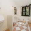 También dispone de una sala de estar/oficina con escritorio, silla, lámpara, estantería con libros, sofá cama (que puede funcionar como dormitorio adicional) y un aseo para invitados.