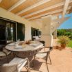 La villa se distribuye en una sola planta y ofrece una experiencia de descanso total en un entorno sofisticado y acogedor. Desde el vestíbulo de entrada, se accede a un espacioso y luminoso salón con techos altos, chimenea, televisión, decoración cuidada y amplias estanterías llenas de libros de todo tipo. Desde aquí se accede directamente a una terraza semicubierta con zona de comedor exterior que incluye una barbacoa, así como sofás tipo chill-out, ideal para almuerzos o cenas al aire libre con vistas a la naturaleza.