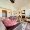 En el exterior, encontrará una piscina privada con impresionantes vistas a la montaña, tumbonas, y una zona techada tipo porche chill-out con sofás, una barra equipada con fregadero, armario de almacenaje y nevera, ideal para reuniones al aire libre.