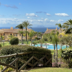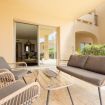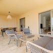 La espaciosa terraza consta de dos áreas, una chill out con su sofá, sus dos sillones y mesa central y un área de comedor con mesa de exterior y 6 sillas. Desde la terraza puedes disfrutar del jardín comunitario y de las magníficas vistas.