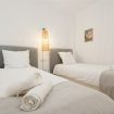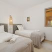 El dormitorio principal con cama de matrimonio y acceso directo a la terraza es en suite, con bañera y doble lavabo. El dormitorio de invitados consta de 2 camas individuales. El segundo baño consta de lavabo y ducha.