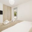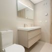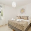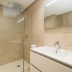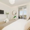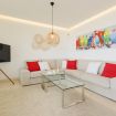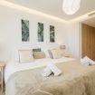 Los 3 dormitorios, al igual que toda la propiedad, comparten un estilo moderno, elegante y minimalista, acentuado por los suelos de mármol y los colores claros. El dormitorio principal tiene acceso a la terraza a través de una ventana que va del suelo al techo y cuenta con un cuarto de baño en suite con tocador doble y una amplia cabina de ducha, además de una smart TV, un gran armario empotrado y una cama de matrimonio.