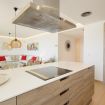 Al entrar en el apartamento, te recibe una luminosa y espaciosa zona de salón-comedor-cocina con ventanales del suelo al techo que se abren a la gran terraza, privada, y a las vistas panorámicas al mar y las montañas que esta ofrece. La zona de estar invita a relajarse y está elegantemente amueblada con un cómodo sofá angular, y un smart TV. A su lado hay una mesa de comedor, de cristal, con capacidad para 6 personas; una moderna cocina americana con estilo, totalmente equipada con todos los electrodomésticos modernos necesarios: nevera, horno, microondas, lavavajillas, cafetera, placa de inducción, etc. Esta zona común tiene abundante luz natural gracias a las ventanas antes mencionadas, pero hay cortinas por si desea reducir la misma.