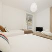 Los otros dos dormitorios comparten un cuarto de baño, también con una amplia cabina de ducha. Uno de ellos tiene una cama doble y una smart TV, mientras que el otro cuenta con dos camas individuales y ambos tienen sus propios armarios empotrados.