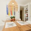 El interior cuenta con un salón diáfano y luminoso, elegantemente decorado y equipado con una Smart TV de grandes dimensiones y un cómodo sofá chaise longue. El comedor adyacente cuenta con una robusta mesa de madera con capacidad para ocho personas. La cocina, de estilo americano y en un impecable blanco, está completamente equipada con electrodomésticos nuevos, incluyendo horno, microondas, frigorífico americano, lavavajillas, placa de inducción, tostador, cafetera y todo el menaje necesario para su día a día. Además, una conveniente zona de lavandería con lavadora y secadora complementa el diseño funcional del espacio.