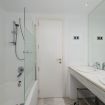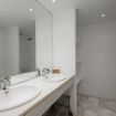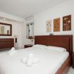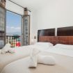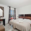El dormitorio principal, en suite, dispone de una cómoda cama doble, un gran baño privado con bañera de hidromasaje, ducha separada, lavabo e inodoro, y acceso a una terraza privada. El segundo dormitorio, también en suite, cuenta con dos camas individuales, balcón con vistas a la Plaza Antonio Banderas y un baño completo con bañera.